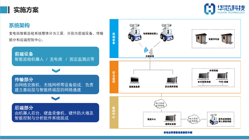变电站智能巡检机器人集非制冷焦平面探测器、无轨化激光导航定位、红外测温、智能读表、图像识别等核心技术于一体,对输变电设备进行全天候巡检、数据采集、视频监控、温湿度测量、气压监测等,提高输变电站内设备的安全运行。在发生异常紧急情况时,智能巡检机器人可作为移动式监控平台,代替人工及时查明设备故障,降低人员的安全风险。