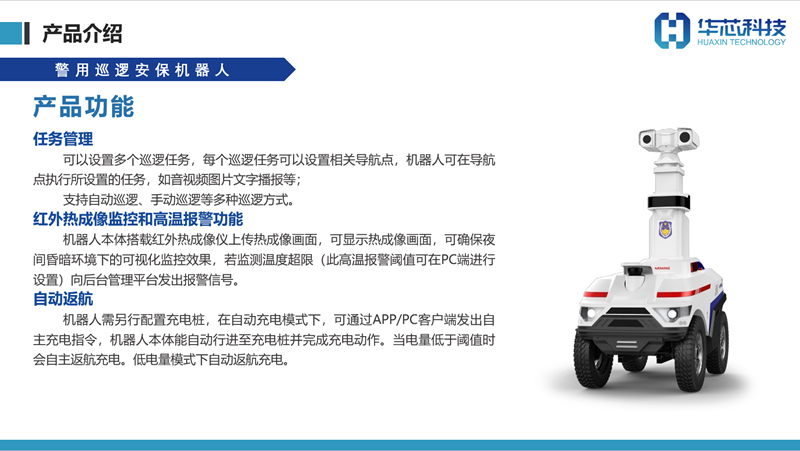 随着物联网、人工智能、云计算、大数据等高新技术的不断发展,警用安保巡逻机器人的研究如火如荼,应用逐步广泛,在协助民警执勤、智能安防、便民服务等方面作用突出。